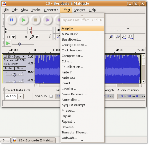 9. You can now cut the area if you wish to remove this part of the audio file otherwise, edit this portion by applying various sound effects to it. The Effect menu contains all the digital audio effects that you can apply on an audio file. Some of these are: