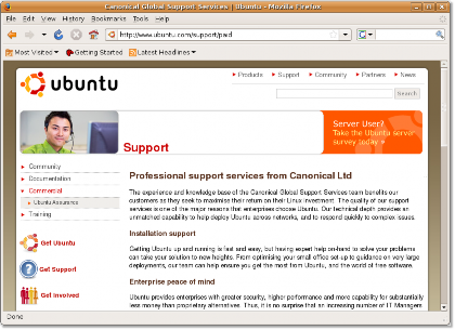 To purchase commercial support, click the contact us link available at the bottom of the Canonical Global Support Services page. This takes you to the About us page. You can fill the form provided on this page to request more information about Canonical Global Support Services. Alternatively, you may click the Purchase Support button present in the left Navigation pane. If you are a company employee, ask your I.S. team for details of your support options as this will vary from company to company.