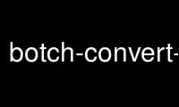 This is the command botch-convert-arch that can be run in the OnWorks free hosting provider using one of our multiple free online workstations such as Ubuntu Online, Fedora Online, Windows online emulator or MAC OS online emulator