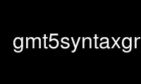This is the command gmt5syntaxgmt that can be run in the OnWorks free hosting provider using one of our multiple free online workstations such as Ubuntu Online, Fedora Online, Windows online emulator or MAC OS online emulator
