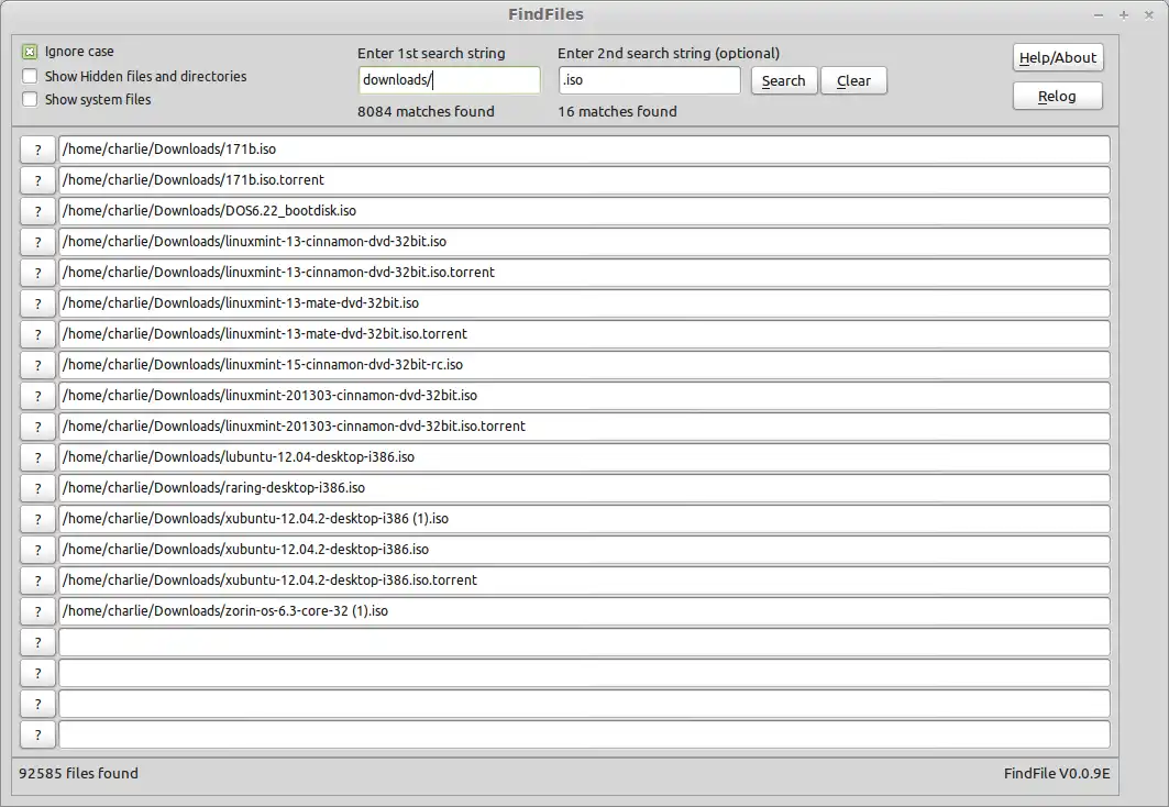 This is the Linux app named FindFiles whose latest release can be downloaded as FindFiles-0.0.10.tar.gz. It can be run online in the free hosting provider OnWorks for workstations.