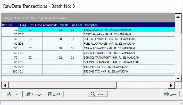 - Raw data Transactions