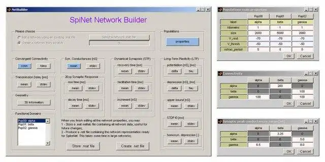 SpiNet is a neural simulation tool for large spiking networks with highly heterogeneous synapses. Neurons are modelled as I&F units with dual exponential synaptic conductances. Complex network models can be easily built using the included tool NetBuilderAudience