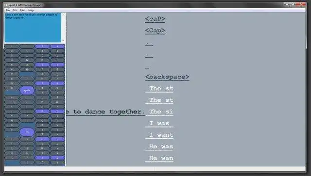 Spirit, a different way to write! You guide your mouse through streams of predicted words. As the intelligent agent learns your writing style, its predictions become more accurate. You can prime Spirit with the prose and poetry of any author!