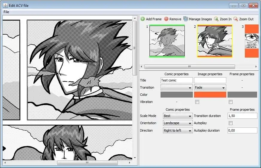 This program is a viewer and editor of format ACV that helps editors to create comics for mobile platforms. The program uses all properties of the format and runs under several platforms, including Windows and Linux.