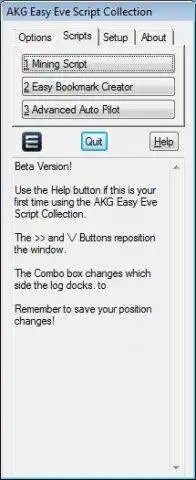 This is the Linux app named AKG Easy Eve Scripts and Macros to run in Linux online whose latest release can be downloaded as beta-exe_v1.2.zip. It can be run online in the free hosting provider OnWorks for workstations.