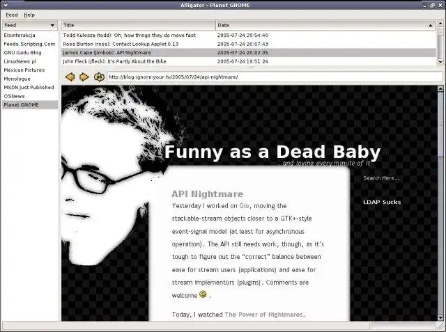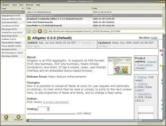 This is an application that can also be fetched from https://sourceforge.net/projects/alligator/. It has been hosted in OnWorks in order to be run online in an easiest way from one of our free Operative Systems.