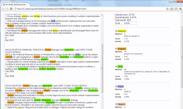 Al's Really Rad Resume Reader (ARRR) helps you to read and evaluate resumes.