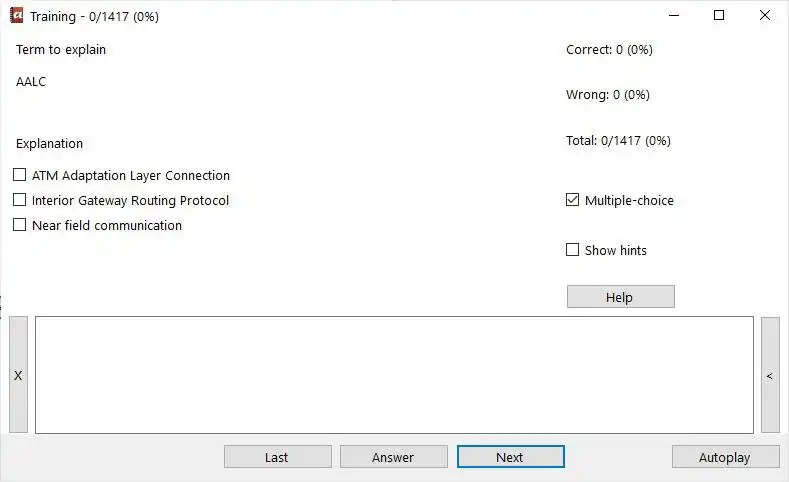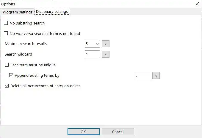 A program to create dictionaries for abbreviations or foreign words. The program contains a CSV-interface, which allows you to even edit data with an external application (e.g. MS Excel or Open Office/Libre Office Calc). Running in background the program can watch the clipboard and show a translation for the matching content. Another feature is the build-in training unit. Additionally the program offers the ability to translate whole sentences or short text passages (the quality strongly depends on the used dictionary).