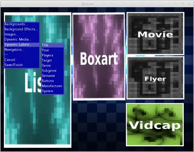 Arcan is a portable and fully scriptable frontend for launching games, emulators and other full-screen applications in a visual appealing way, as seamlessly as possible. The API is sufficiently complete for other projects as well, e.g. rapid game prototyping
