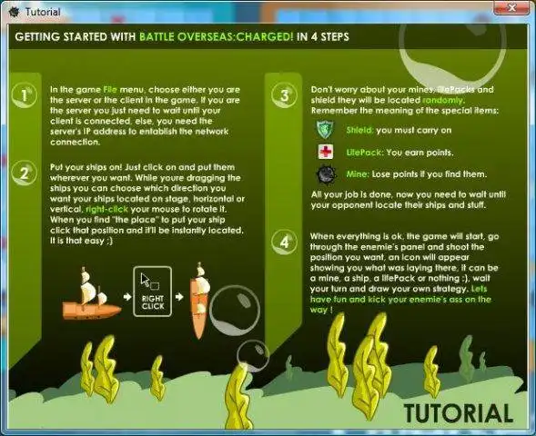 Battle Overseas: Charged! is the evolution of the traditional game of Battleship, with new power-ups, special items, and a really nice graphic environment. Just download it, give a friend your IP and have fun!Audience