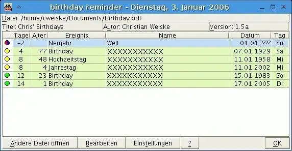 This is the Linux app named Birthday reminder whose latest release can be downloaded as birthday-2.97devel.jar. It can be run online in the free hosting provider OnWorks for workstations.