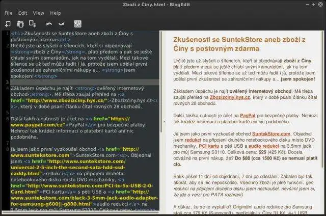 This is the Linux app named BlogEdit whose latest release can be downloaded as blogedit-0.0.2.zip. It can be run online in the free hosting provider OnWorks for workstations.