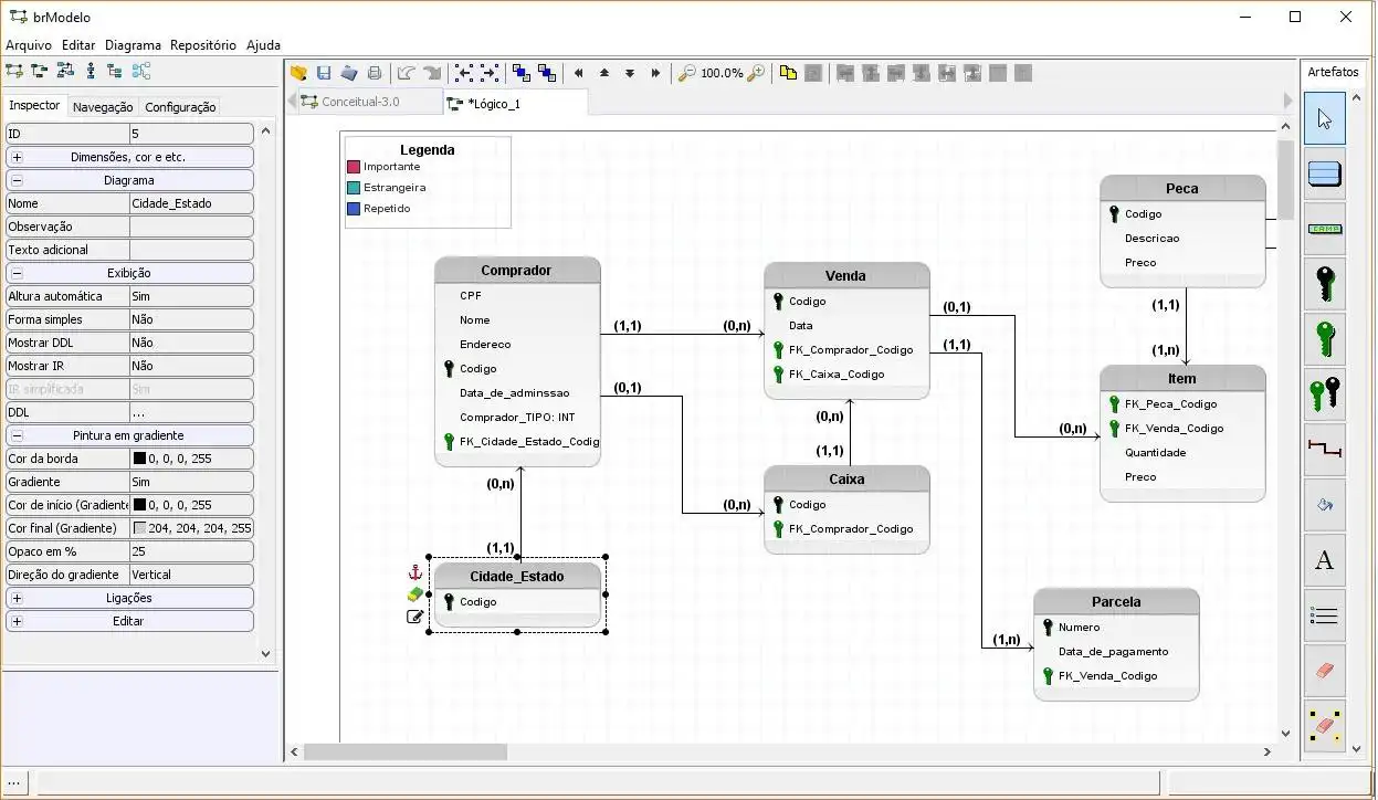 Tool used to Database ER modelFerramenta para modelagem ER em bancos de dados.