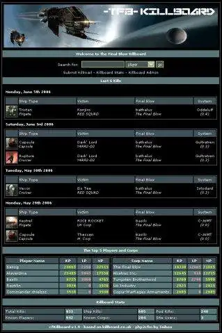 cfKillboard is a ColdFusion/MsSQL web application (with kill mail parser) for an EVE On-Line kill board. It is a port of Geoff Wilson's Falcon KMS (killboard.co.uk) written in PHP/MySQL.Audience