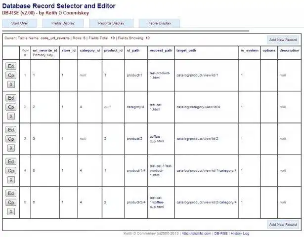 Database Record Selector and Editor (DB-RSE) is a PHP program intended to be a very simplified MySQL database record selector and editor. Having only three files, it is simple to install and setup. Select a table, select a record, edit, and save. Version 2 now also lets you add new records and copy existing records.