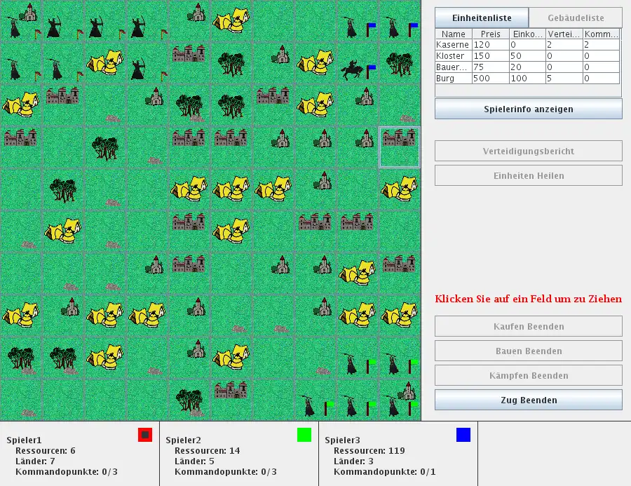 Jeder Spieler startet an einer Ecke der Karte und kann dann nach der Reihe Einheiten kaufen, ein Gebäude bauen, kämpfen oder Einheiten aus einem eigenem Feld in ein benachbartes eigenes Feld ziehen. Gewonnen hat der Spieler, der zuerst alle anderen vollkommen vernichtet hat.Features