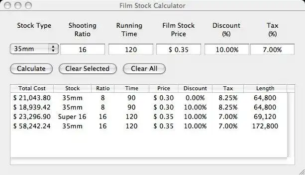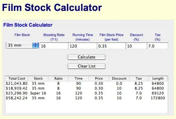 The Film Stock Calculator is an application for calculating the film stock footage and cost for a film.Audience