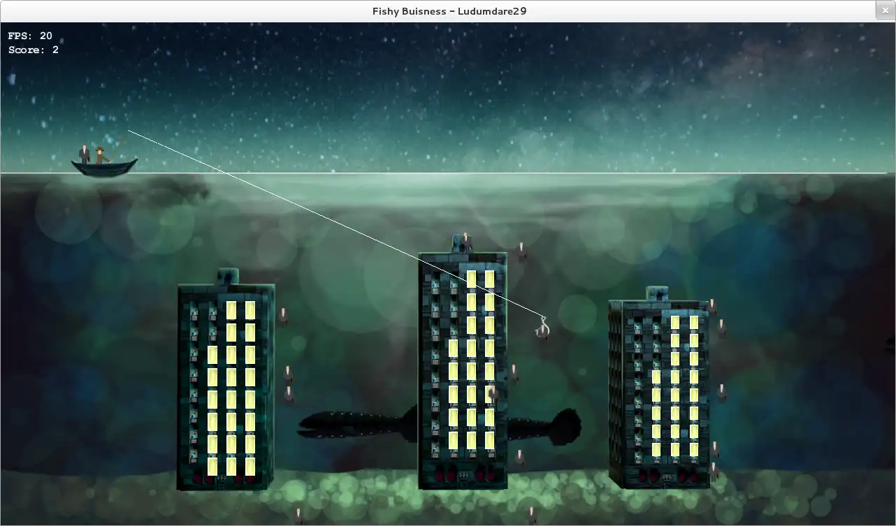 This is the Linux app named Fishy Buisness_Ludumdare29 to run in Linux online whose latest release can be downloaded as FishyBuisness.zip. It can be run online in the free hosting provider OnWorks for workstations.