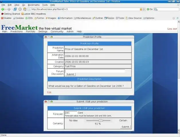 FreeMarket is a software package for running simple virtual prediction futures markets that uses the renowned PHP scripting language and MySQL database tools. It is designed for educational and medium-scale research applications.