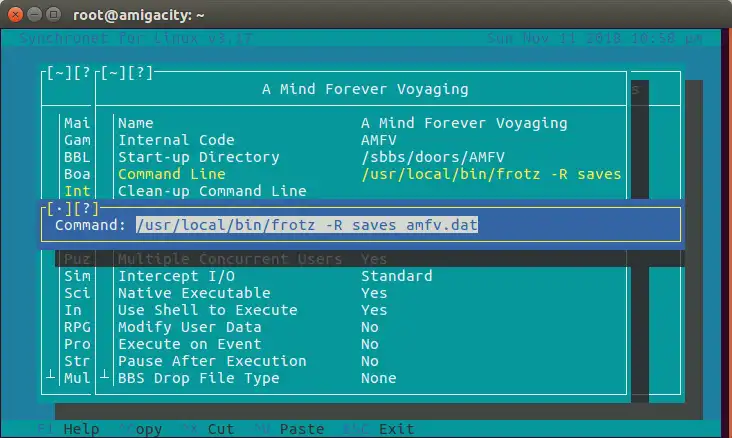 Version of Frotz hardened for use as a BBS door. This disables direct filesystem access and includes the settings for a SynchronetBBS installation.Features