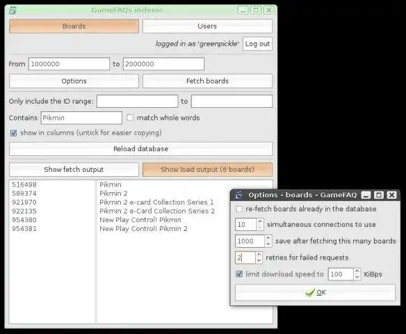 GameFAQs board and user indexer fetches pages from GameFAQs and stores board and user names in a database for browsing.