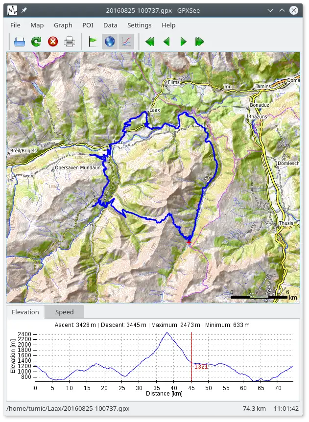 GPXSee is a Qt-based GPS log file viewer and analyzer that supports all common GPS log file formats.Features