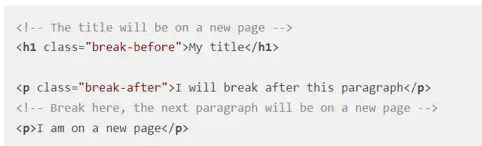 - To avoid the page to break "inside" an element, you can use the avoid-break-inside class