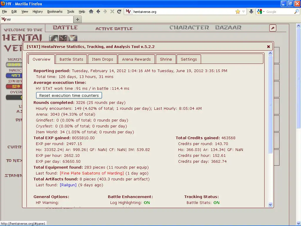 http://hentaiverse.org/ is an RPG game like D&D.HV STAT is an Add-on/Greasemonkey Tool to Database & show the Monster Strengths/Weakness so you know what is best to attack them with. Also tracks your character's strengths/weakness, items dropped/won and other statistics.