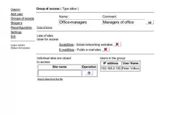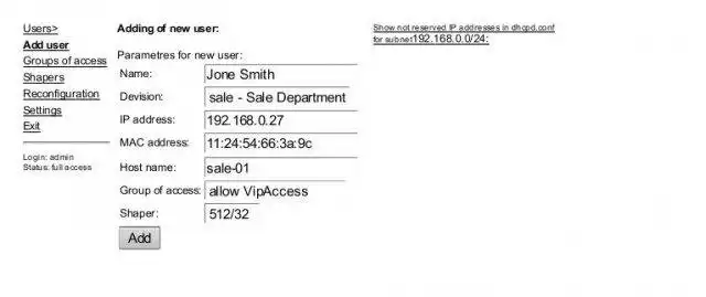 IPaccount is web tool for internet resources access management of the Squid proxy server. It supports setting up of traffic shapers, ip address reservations for hosts of LAN within DHCP server. The statistics of logons in Active Directory domain is added for the new version.