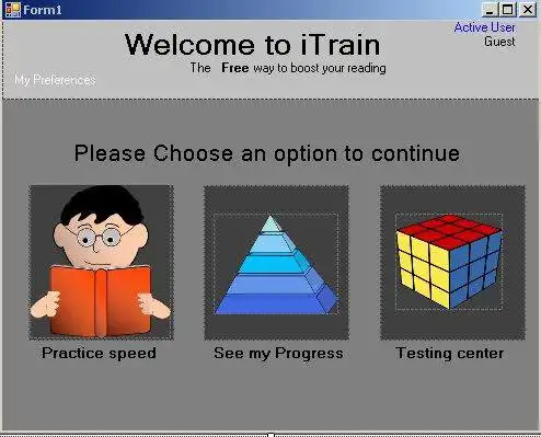 This is the Linux app named iTrain: The Free way to boost ur reading to run in Linux online whose latest release can be downloaded as iTrain-PreAlphaV0800.zip. It can be run online in the free hosting provider OnWorks for workstations.