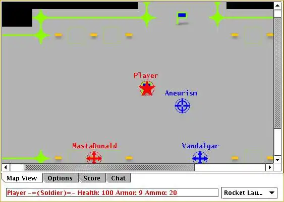jFlagCap is a 2D overhead capture the flag game written in Java.