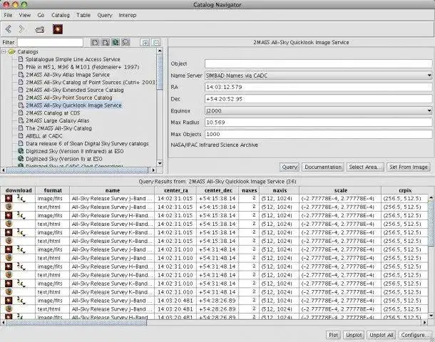 The JSky package contains java classes for displaying astronomical images, searching astronomicalcatalogs and plotting catalog symbols on images. The jskycat application is also included and makes use of most of the features.