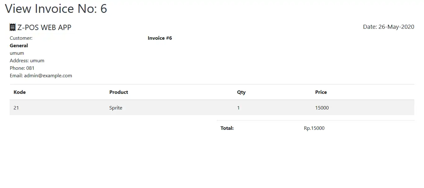 create new db and name it with lapos , import db on project folder zinvoice - emptydb.sql file