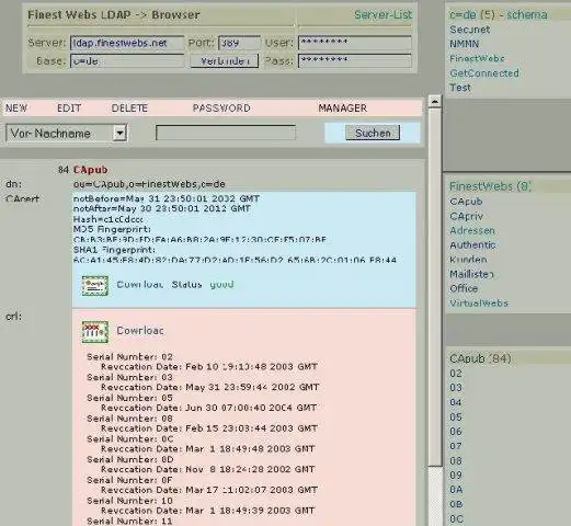 A LDAP browser/editor written in PHP4 for the most purposes of handling any directory based on ldapv2/3. Rough and ready certificate showup, OCSP responses. You need: webserver with php, mod_ldap and OpenSSL >= 0.9.7Audience