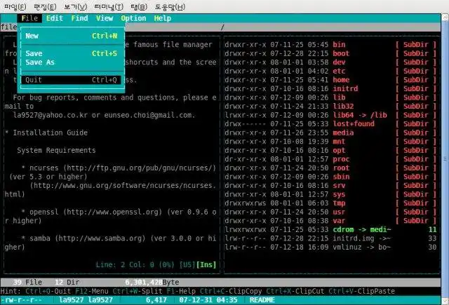 LinM is a clone of Mdir, the popular file manager(MC style) in the MS-DOS age. LinM inherits the keyboard shorcuts and the screen layout from Mdir to maximize user-friendliness. ( ftp, sftp, samba supported. )http://kldp.net/projects/mls
