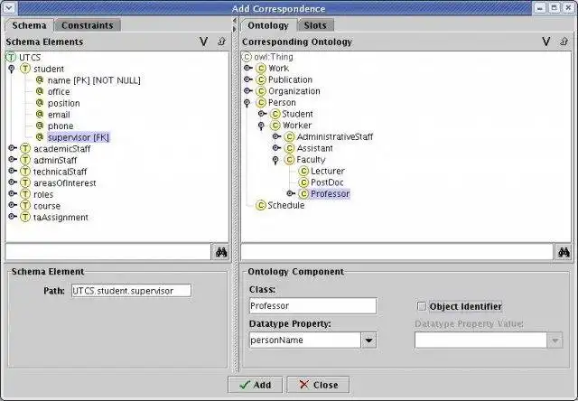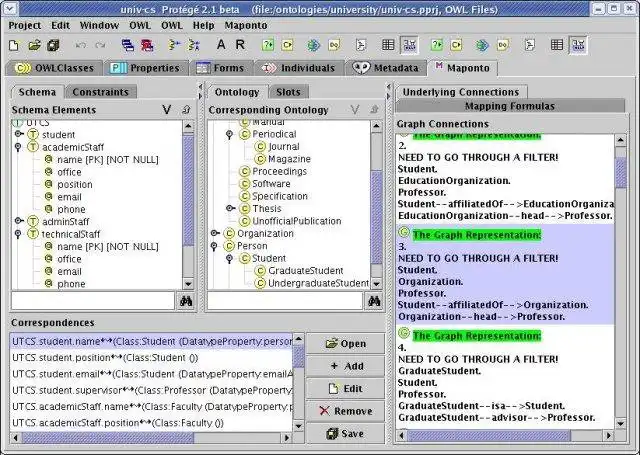 MAPONTO is an interactive tool for discovering semantic mappings between database schemas and ontologies as well as between different database schemas. The tool analyzes semantics in the input schemas and ontologies for generating semantic mappings.User interface