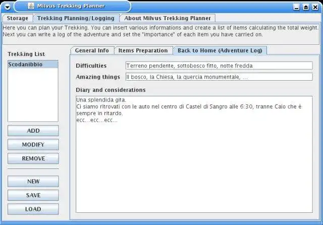 This is an application that can also be fetched from https://sourceforge.net/projects/milvustrekking/. It has been hosted in OnWorks in order to be run online in an easiest way from one of our free Operative Systems.