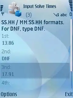 Written in J2ME, this is a simplistic mobile app which computes Rubik's cube session averageFeatures