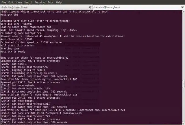 Moscrack is a perl application designed to facilitate cracking WPA keys on a cluster of computers. This is accomplished with any one of Mosix clustering software, ssh, rsh or Pyrit connectivity to nodes. Cluster nodes can run any Un*x variant (includ