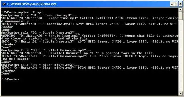 This is the Linux app named MP3val whose latest release can be downloaded as mp3val-0.1.8_with_frontend-0.1.1-bin-win32.zip. It can be run online in the free hosting provider OnWorks for workstations.