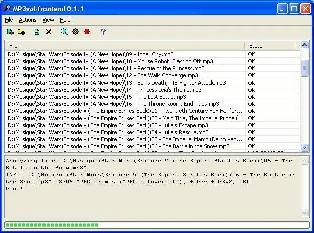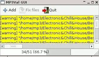 MP3val is a small, high-speed tool for MPEG audio files validation and (optionally) fixing problems. It was primarily designed for verification of MPEG 1 Layer III (MP3) files, but supports also other MPEG versions and layers.