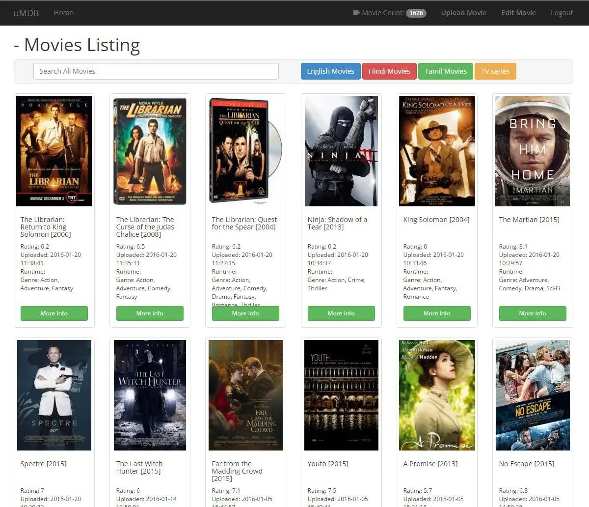 This is for personal movie collectors, allows you tu upload movies and it will fetch IMDB information once you insert the IMDB URL.
