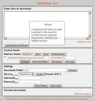A multi-threaded downloader with web interface that supports rapidshare.com, netload.in and hotfile.com services. Originally created for WD's MBWE but it can be used with any linux distro. It can be fully controlled remotely from it's web-interface
