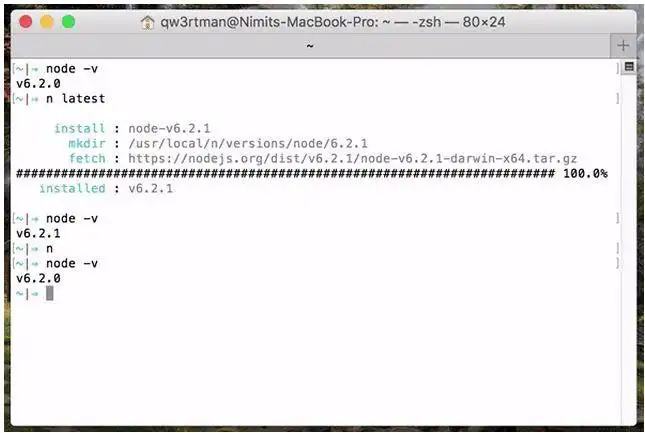 - Execute n on its own to view your downloaded versions, and install the selected version