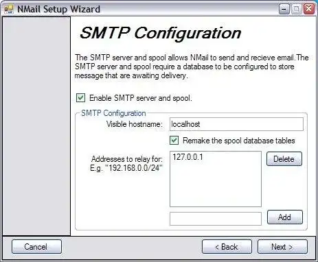This is an application that can also be fetched from https://sourceforge.net/projects/nmailserver/. It has been hosted in OnWorks in order to be run online in an easiest way from one of our free Operative Systems.