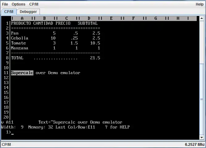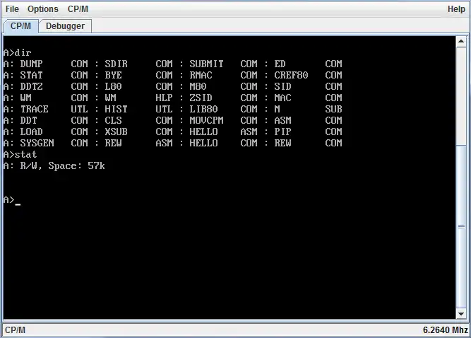 Oemu is a 8085 emulator written in java. It runs only CP/M but intends to be a multiemulator with full debugging capabilities.Some features Oemu currently implements (at least partially): terminal simulator (with customizable behaviour), swing based debugger, access to CP/M disk format (Oemu can mount directories as CP/M disks), multilingual user interface.