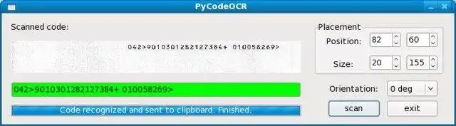 This is an application that can also be fetched from https://sourceforge.net/projects/pycodeocr/. It has been hosted in OnWorks in order to be run online in an easiest way from one of our free Operative Systems.