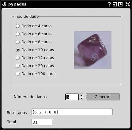 PyQT app that rolls dices, generates random results and shows it.
