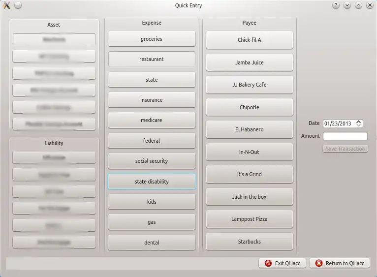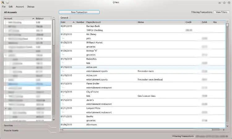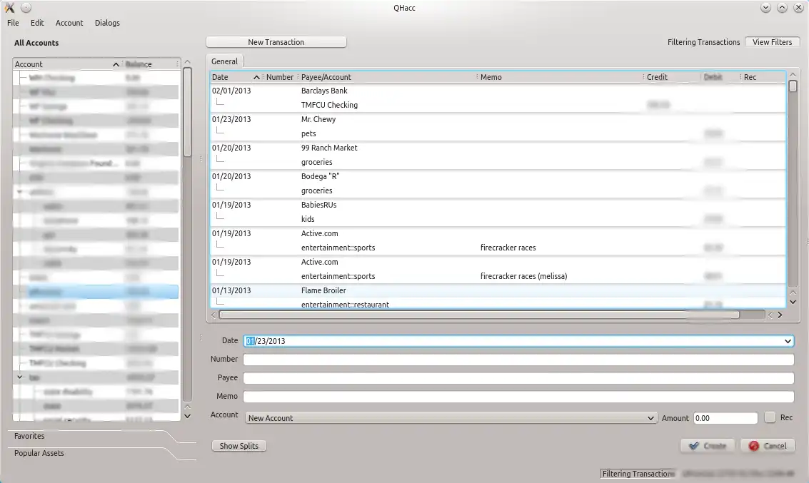 QHacc is a personal accounting program based on Qt. It features double- or single-entry bookkeeping and a reconciliation window. It also provides support for memorized and split transactions, graphing, reporting, archiving, and scheduled transactions tha